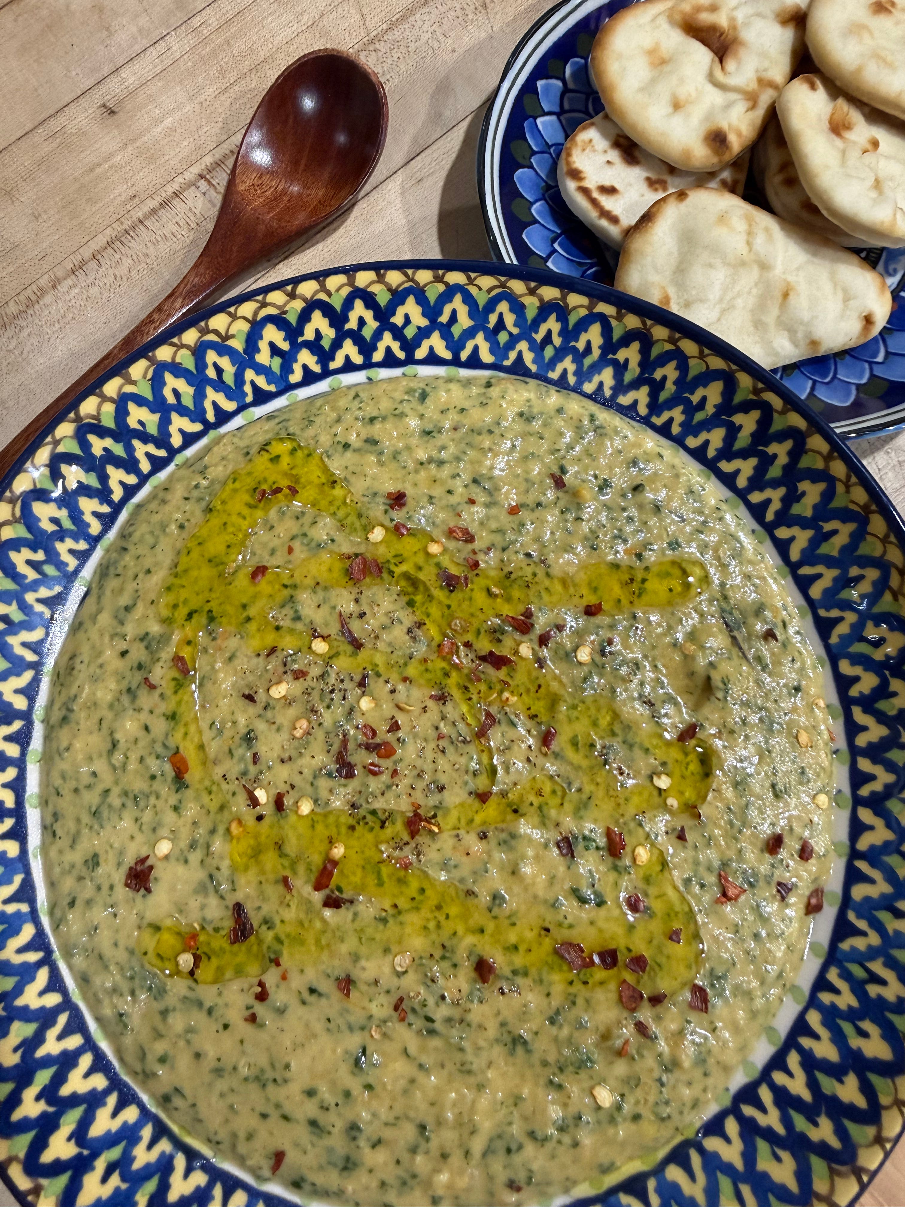 Creamy White Bean & Greens Skillet Dip with Toasted Naan